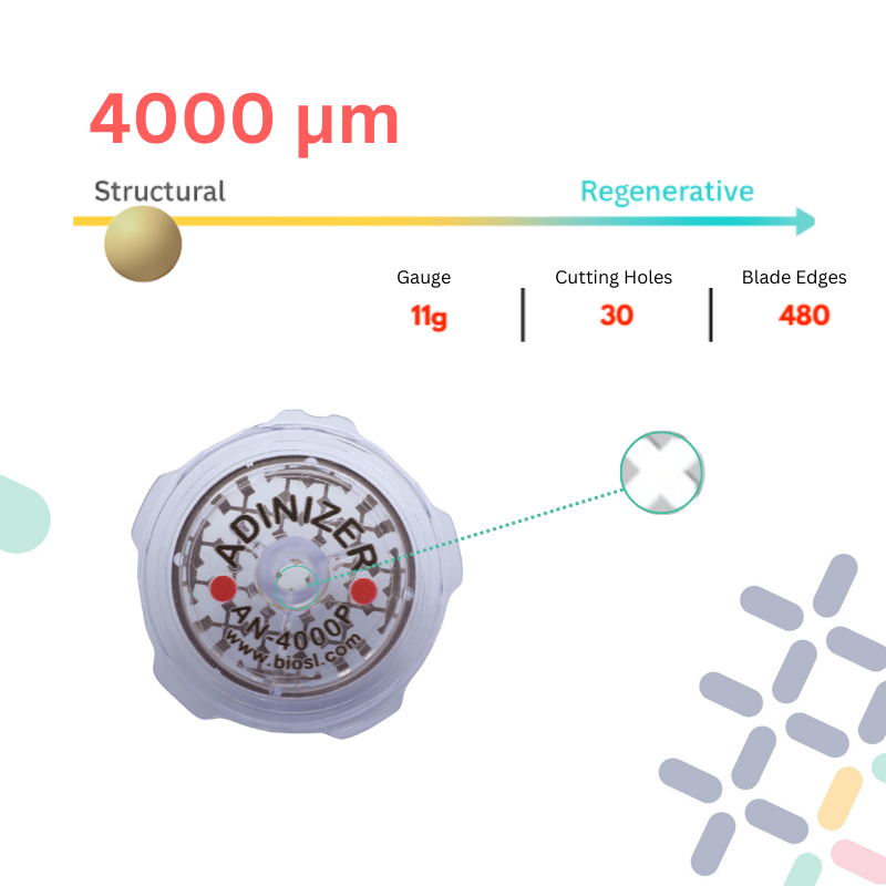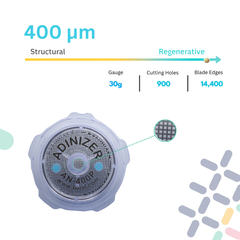 Multiple blade sizes, one consistent goal: precision. Customize fat consistency to inject with your preferred needle or cannula gauge, matched to the patient's anatomical and biological needs.